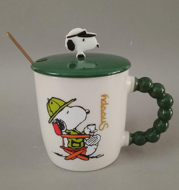 Taza con tapa y cuchara de Snoopy. Verde